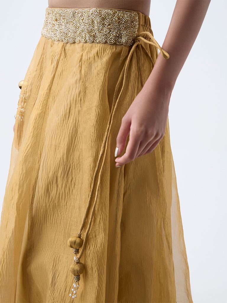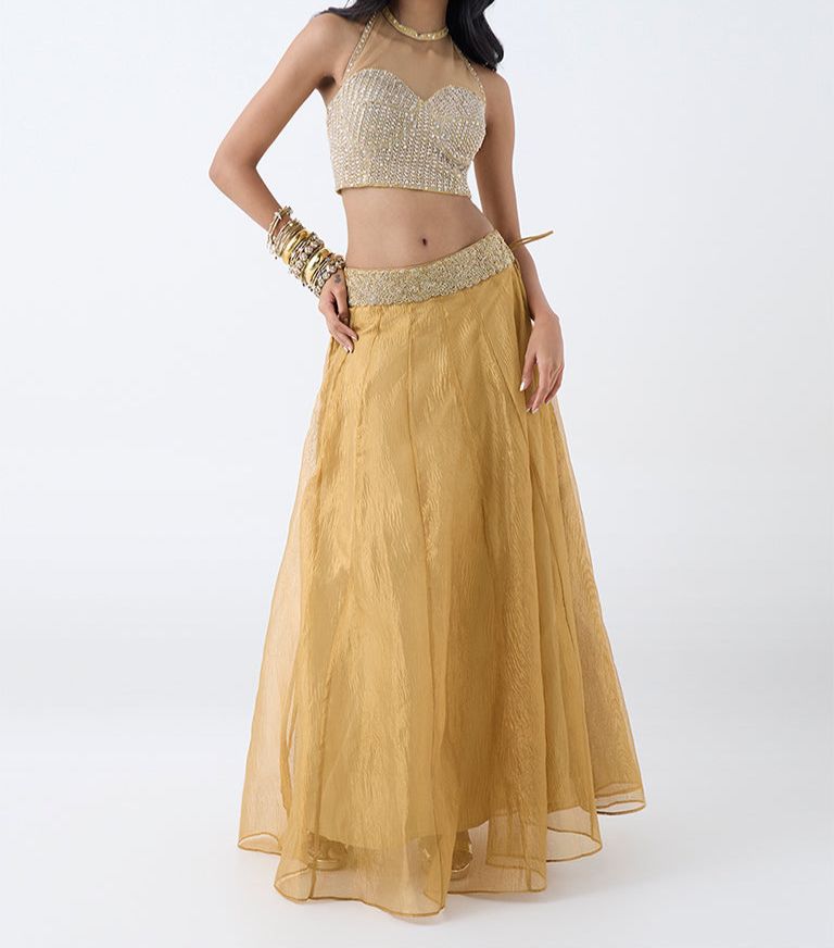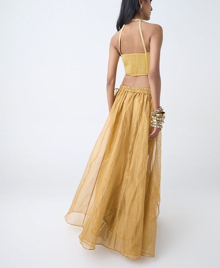 Turn heads this festive season with Vark’s mustard ethnic top, where vibrant colour meets delicate craftsmanship. Exquisite floral and sequin embroidery add thoughtful detailing, while the high-quality fabric ensures all-day ease. Finished with a scoop neck, adjustable shoulder straps, and a smocked back, this piece pairs beautifully with statement bottoms for a standout celebration look.